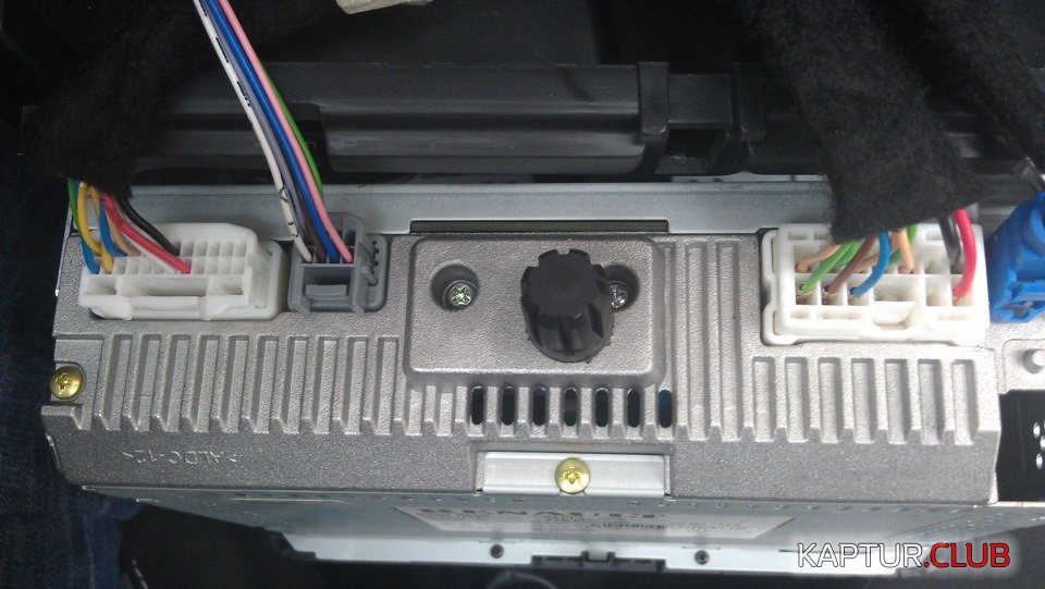 Вижу, что проводка к динамикам от магнитолы завернута в черный чехол. Значит врезаться придется рядом с клеммой. То есть в видном для дилера месте.