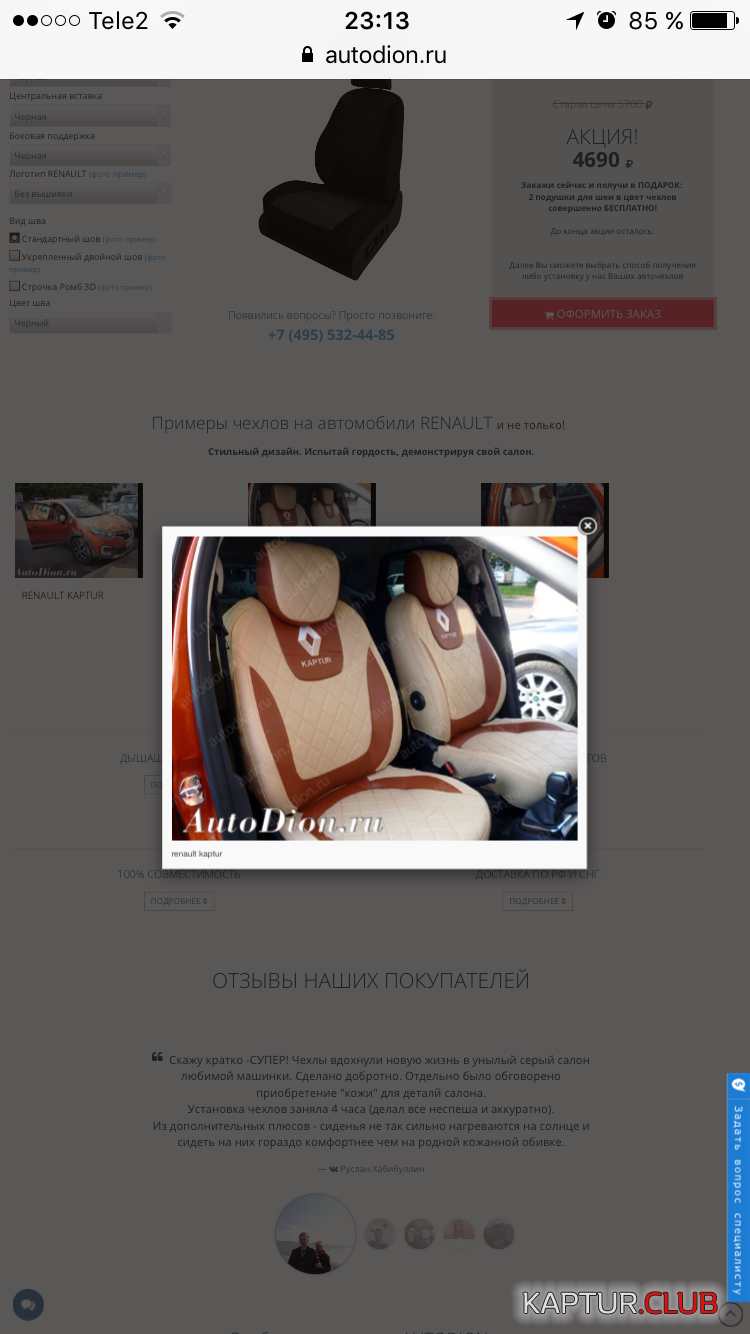 Еще добавлю. Когда заказывал чехлы через сайт, к беседе подключилась девушка (имена меняет), к-ая представилась менеджером по заказам и быстренько кинула свои реквизиты для предоплаты. Пришлось забанить. Не ведитесь! Сайт чисто ознакомительный. Для оформления заказа заключается договор (лично), проводится консультация по выбору ткани, цвета строчки, рисунка, наличия подушек безопасности и тп. Вносится 1/3 от суммы заказа, выписывается чек.