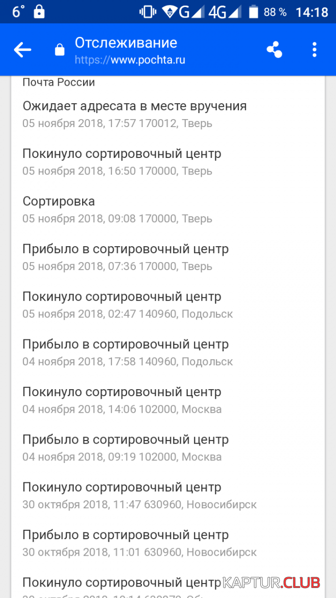 Ну значит первый город по треку была Самара, что в принципе логично, а вот дальше, вместо того что бы напрямую переслать в Тольятти, посылку за чем то отправили в Москву, там неделю промурыжили и оттуда отправили в Тольятти.