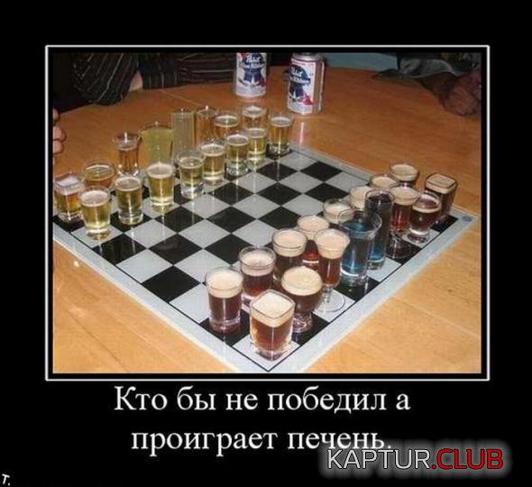 Мне как то на днюху подарили такие шахматы. Сейчас лежат спрятанные далеко и глубоко в шкафу! Мы с дарителем сели играть!!!!!!Лучше бы не садились. Белые-водовка, черные-коньяк. Не помню, кто выиграл!!!!! Ни голова, ни печень спасибо не сказали!!!!