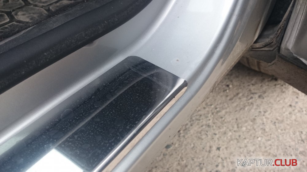 У меня стоят накладки, тоже потертости от резинки есть, они неизбежны. С накладками проблема полностью решается, т.к. скоблится нержавейка а не ЛКП. Вот пассажирская сторона.
