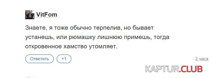 Сколько говорено переговорено... Выпил - за руль не садись.... а вне руля не садись за клавиатуру если всадил лишнего, от этого потом одни проблемы по форуму, такого понапишут, а потом удивляются, с чего к ним внимания столько и реакция на них такая. Всадил лишнего - сиди читай, никаких кнопок и размышлений по синьке, чтоб потом не было БАНа и всеобщего презрения... А уж если и наковырял лишнего - то че удивляться и обвинять всех в троллинге. И обвинять что модераторы у нас тут типа не алёё.. Вот до чего синька доводит.. не может понять человек, что у нас по сути и нет модераторов.. анархический форум у нас, а все как геропейцы-одни голословные обвинения... Ну можем мы пофлудить и есть тут у нас красавцы, но чтоб троллить ...просто я хотел сказать, что троллят не так, как у нас тут выдается за это ( за троллинг ) ....троллят грубо и по другому.... К счастью у нас это не прижилось ( троллинг )