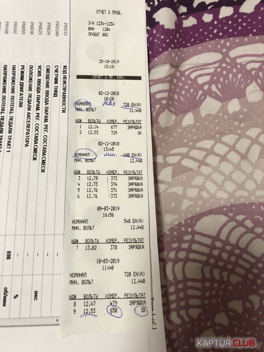 как и ожидалось - вердикт дилера: всё зер гут! Да, к тому же (при проведении всех замеров)....наиточнейший сканер дилеров показал напругу: 13.3 Вольта!!!!!! Т.е., мой хреновый кЕтайский показывал: 13.4 вольта ...))) Дали Электронный отчёт по ЭБУ - ошибок нет (всё работает исправно) Дали чек по АКБ - с надписью ХОР. АККУМ: при Номинальном ампераже в 720 (EN).....при замере выдал 649 (EN) Так же при проверке генератора под полной нагрузкой он выдал: 12.53.....и прибор их написал, что типо всё ОК идёт зарядка! (типо всё хорошо) Сказали для этой машин это норма, так работает электроника на ней. Когда надо,реле регулятор добавляет напряжение на АКБ и он заряжается быстрым зарядом .....и типо ему этого хватает. Я короче, всё понял, это такой алгоритм в этой машине....так сделано заводом изготовителем, в общем это такая штатная работа (говоря простым языком) Так что, завод изготовитель - желает вам счастливого пути...иииии....не забывать заряжать АКБ на авто иначе кранты ему придут очень быстро...при таком заложенном алгоритме. Ругать я дилеров тоже не могу - ибо они, действительно протестили всё своими сканерами......которые им выдали ответ - всё хорошо! (дальше этого они прыгнуть тоже не могут...)...тут я их понимаю, у них регламент! Извините....как говорится...))) Увы! Делая вывод можно сказать одно: АКБ на 1.6 .....явно недозаряжается, отсюда сульфатация и скорая смерть батареи)...т.е., если мечтаете о том, что батарея у вас проходит 7 лет - забудьте! Дай Бог, чтобы три года отходила..))) Если чуть больше - вам крупно повезло..)))) Не забываем заряжать АКБ! (хотя бы раз в месяц......если поездки не частые...)
