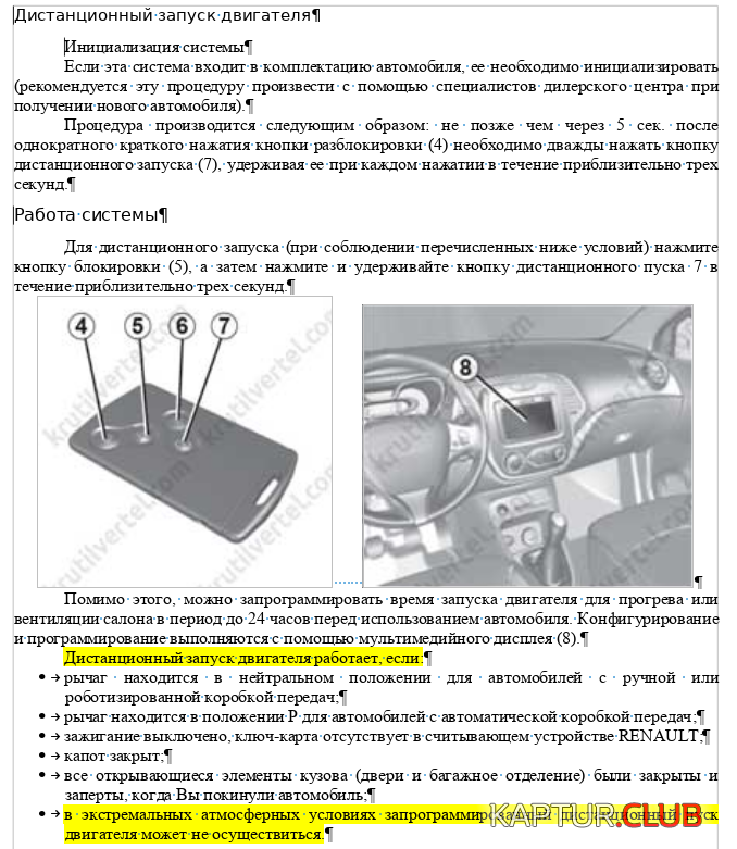 Каптур.Клуб → Запуск авто и бесконтактный ключ.
